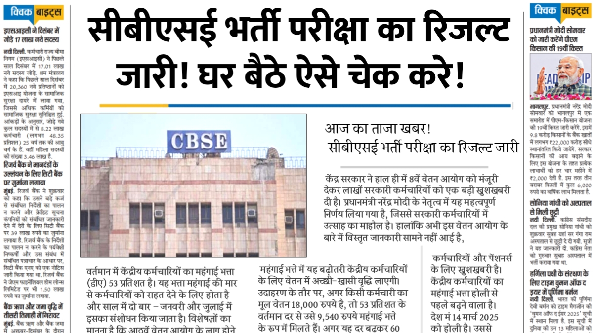 CBSE Recruitment Result 2026: सीबीएसई भर्ती परीक्षा का रिजल्ट जारी, ऐसे चेक करें Merit list और Cut-Off